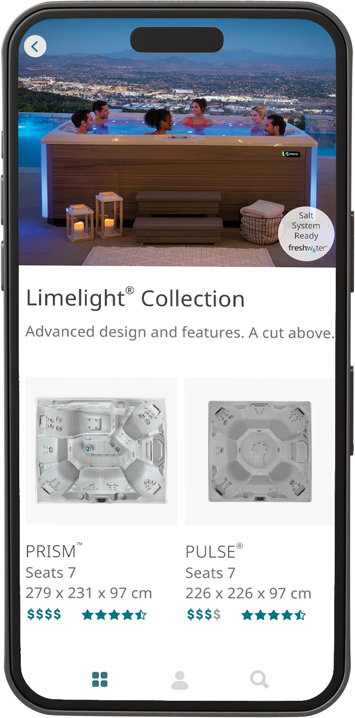 Available on all Highlife® Collection and Limelight® Collection spas, this salt water system is the simple way to keep spa water clean, clear and sanitized for up to a full year.* With just a little salt in your spa water, the system generates chlorine automatically so you’ll spend less time measuring and adding chemicals.